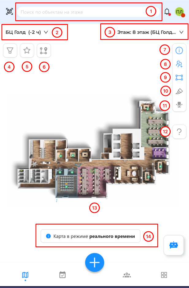 - Область отображения карты этажа
