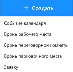 Кнопка «+ Создать». Выпадающий список, предлагающий следующие действия: