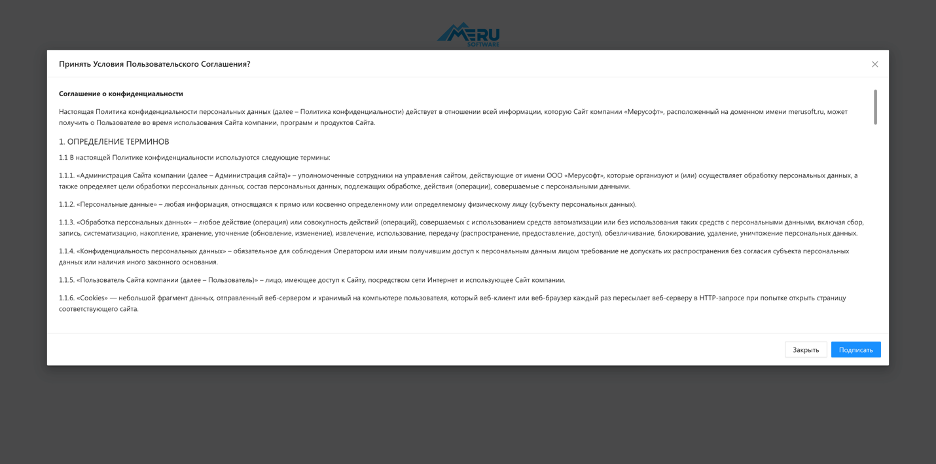 Примечание. При первом входе требуется принять "Пользовательское соглашение"